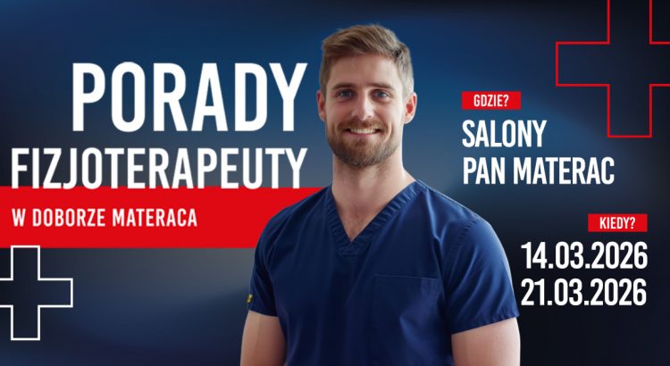 Najbliższe weekendy to idealna okazja do skorzystania z darmowych porad fizjoterapeutów w salonach Pan Materac w całej Polsce! W soboty – 14.03. oraz 21.03.2026 r. – serdecznie zapraszamy do skorzystania z porad wyspecjalizowanych fizjoterapeutów! Jest to doskonała okazja, aby uzyskać porady od specjalistów dotyczących prawidłowego ułożenia ciała podczas snu, jak również zakupu wysokiej jakości produktów do sypialni w niezwykle korzystnych cenach! Sprawdź i dowiedz się więcej!