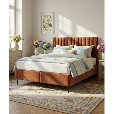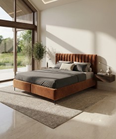 Łóżko Fiore marki Comforteo to elegancka propozycja do sypialni. Jest ono symbolem nowoczesnego designu i komfortu, które z harmonią wpasuje się w każdy wystrój, od minimalistycznego po klasyczny. Model łączy w sobie wysmakowaną estetykę z praktycznością użytkowania. Solidna konstrukcja zapewnia trwałość i wytrzymałość na lata. Wysokość ramy została starannie wyważona, aby ułatwiać wstawanie i kładzenie się. Wysoki zagłówek gwarantuje komfort podczas wieczornego czytania książki czy oglądania filmu. Pionowe pikowania są pięknym elementem dekoracyjnym. Dzięki szerokiej palecie tkanin można dopasować kolor oraz fakturę obicia do indywidualnych preferencji. Łóżko Fiore Comforteo zostało zaprojektowane w wersji z pojemnikiem. Pod materacem kryje się obszerny schowek, do którego łatwy dostęp umożliwiają mechanizmy podnoszenia. To idealne miejsce na pościel, koce czy sezonową garderobę. Łóżko Fiore Comforteo opiera się na smukłych, ale solidnych nóżkach. Dodają one lekkości konstrukcji oraz ułatwiają czyszczeniu powierzchni pod meblem.