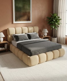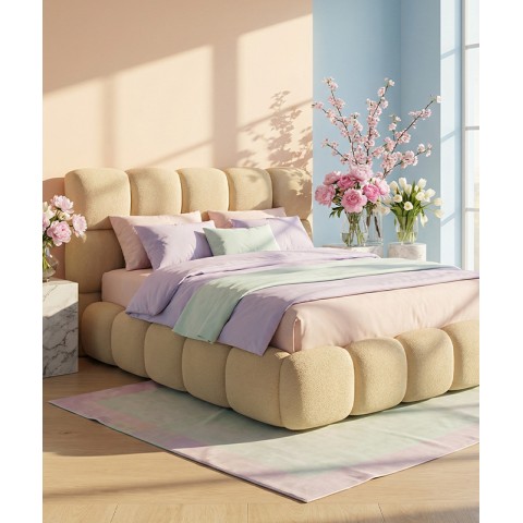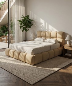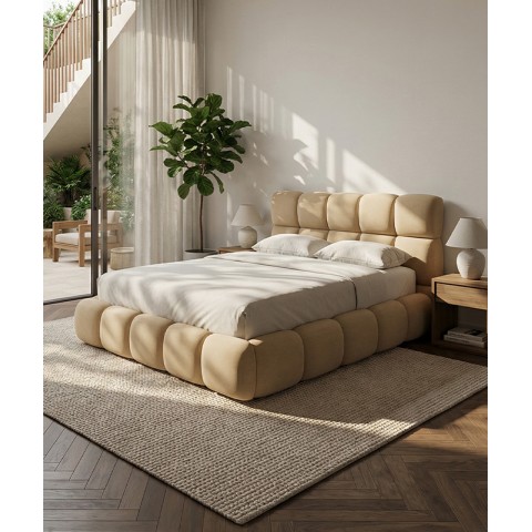 Łóżko tapicerowane z głębokimi wciągami, bez nóżek. Występuje w wersji z pojemnikiem na pościel i bez.