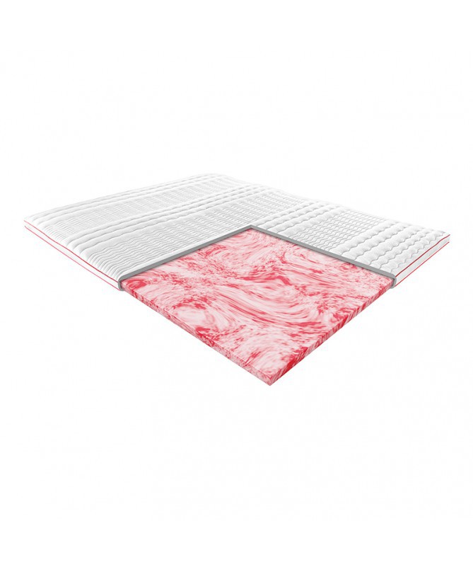 Materac posłaniowy pełni funkcję ochronną - zabezpiecza materac główny przed zbyt szybkim zużyciem i uszkodzeniami. To jednak nie jego jedyna zaleta, ponieważ dodatkowo podnosi komfort snu, co przekłada się na lepszy wypoczynek oraz uczucie świeżości po przebudzeniu. Model został wykonany z pianki żelowej Red Soft, która reguluje temperaturę i doskonale dopasowuje się do kształtu ciała, niezależnie od przyjętej pozycji podczas snu. Materac wyposażono w pikowany pokrowiec Smart z powłoką antypoślizgową Antyslip, zapobiegającą przesuwaniu się produktu. Górną część pokrowca (Smart) można prać w pralce w temperaturze do 60°C, natomiast dolną (Antyslip) zaleca się czyścić miejscowo. Dopuszczalne różnice wymiarów wynoszą do 2 cm zarówno w szerokości, jak i długości materaca.