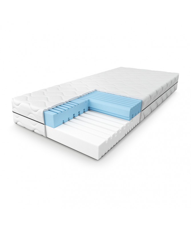 Materac Firmflex marki Pan Materac został zaprojektowany z myślą o osobach, które oczekują stabilnego podparcia ciała i preferują spanie na nieco twardszej powierzchni. Rdzeń materaca stanowi specjalnie profilowana pianka poliuretanowa, która zapewnia odpowiednią stabilność oraz pomaga ograniczyć dyskomfort wynikający z niewłaściwego podparcia ciała. Materiał ten charakteryzuje się dobrą trwałością, dzięki czemu materac zachowuje swoje właściwości przez długi czas użytkowania. Pianka ogranicza także rozwój grzybów i szkodliwych mikroorganizmów, co sprzyja utrzymaniu higienicznego środowiska snu i sprawia, że model ten może być odpowiedni dla alergików. Materac może nieznacznie różnić się od wymiarów nominalnych – dopuszczalna tolerancja szerokości i długości wynosi do 1%.