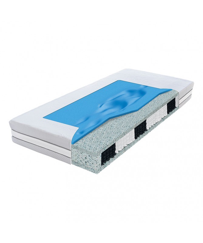 Materac Hybrid Aquasleep od Materasso, dzięki nowoczesnym materiałom, łączy komfort i solidne wsparcie. Zawiera on termoelastyczną piankę Aqua Sleep, która dopasowuje się do ciała i redukuje nacisk, oraz trwałą piankę HD, wspierającą sprężyny kieszeniowe. Dzięki temu kręgosłup pozostaje w prawidłowej pozycji przez całą noc. Niezależnie pracujące sprężyny, zapewniają z kolei indywidualne podparcie oraz redukują odczuwanie ruchów partnera.