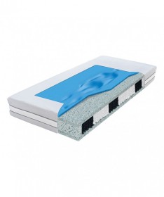Materac Hybrid Aquasleep został stworzony z myślą o maksymalnym komforcie i optymalnym podparciu ciała. Wykorzystuje nowoczesne materiały, które łączą miękkość z trwałą stabilnością. Górną warstwę stanowi włoska termoelastyczna pianka Aqua Sleep, reagująca na ciepło i nacisk, dzięki czemu delikatnie dopasowuje się do sylwetki i zmniejsza punkty ucisku. Kolejna warstwa to wytrzymała pianka wspierająca HD o gęstości 70 kg/m³, pełniąca funkcję bufora nad sprężynami kieszeniowymi. Takie połączenie zapewnia skuteczne wsparcie i pomaga utrzymać kręgosłup w naturalnej pozycji przez całą noc. Rdzeń materaca tworzą sprężyny kieszeniowe pracujące niezależnie, co gwarantuje indywidualne dopasowanie i ogranicza przenoszenie ruchów. Wymiary materaca mogą różnić się od nominalnych o ±1% w zakresie szerokości i długości.