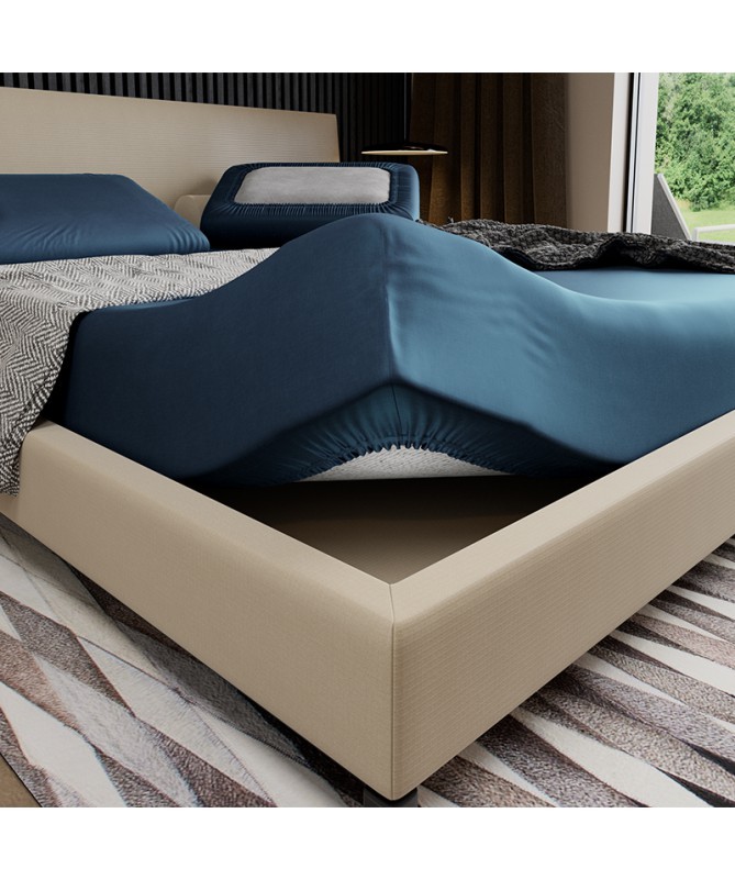 Satynowe prześcieradło z kolekcji Pan Materac w rozmiarze: 120x200 cm. Prześcieradło w kolorze granatowym.