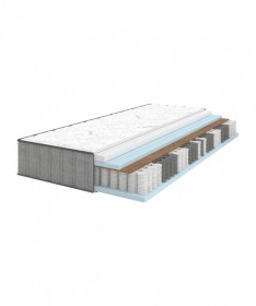 Materac Verbena to doskonała propozycja dla osób ceniących komfort i zdrowy sen. Jego konstrukcja opiera się na nowoczesnym systemie sprężyn kieszeniowych z 7 strefami twardości, które zapewniają odpowiednie podparcie dla całego ciała. W materacu zastosowano dwie pianki – Bultex oraz Dynamic Blue. Pianka Bultex, dzięki porowatej strukturze, wspiera prawidłową cyrkulację powietrza i pomaga utrzymać higienę snu, natomiast Dynamic Blue wyróżnia się wysoką trwałością, co przekłada się na długą żywotność materaca. Dodatkowo między warstwą pianek a sprężynami umieszczono matę kokosową, która zwiększa twardość konstrukcji, poprawia stabilność podparcia oraz chroni materac przed odkształceniami. Dzięki temu model Verbena łączy wygodę, odpowiednią wentylację i trwałość, zapewniając komfortowy wypoczynek każdej nocy. Materac może się różnić szerokością i długością od wymiarów nominalnych: szerokość i długość o 1%.