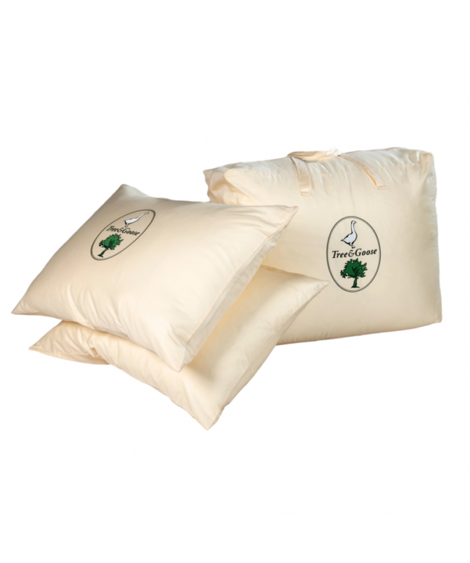 Poduszka Tree&Goose została wypełniona wysokogatunkowym puchem pochodzącym z Polski. Jej poszycie to połączenie włókien tencel (50%) oraz bawełny (50%), co sprawia, że materiał jest przyjemny w dotyku, dobrze pochłania wilgoć i zapewnia odpowiednią cyrkulację powietrza. Tencel to naturalne włókno wytwarzane z drewna w sposób przyjazny dla środowiska. Wypełnienie z puchu zostało starannie dobrane i poddane procesowi oczyszczania, dzięki czemu spełnia nawet surowe normy jakościowe obowiązujące w Japonii. Aby zachować jej puszystość, zaleca się regularne strzepywanie poduszki. Świeżość produktu można utrzymać poprzez wietrzenie oraz pielęgnację zgodną z zaleceniami umieszczonymi na metce.